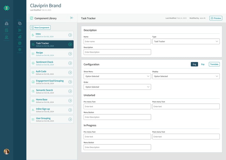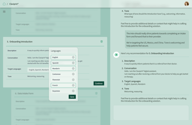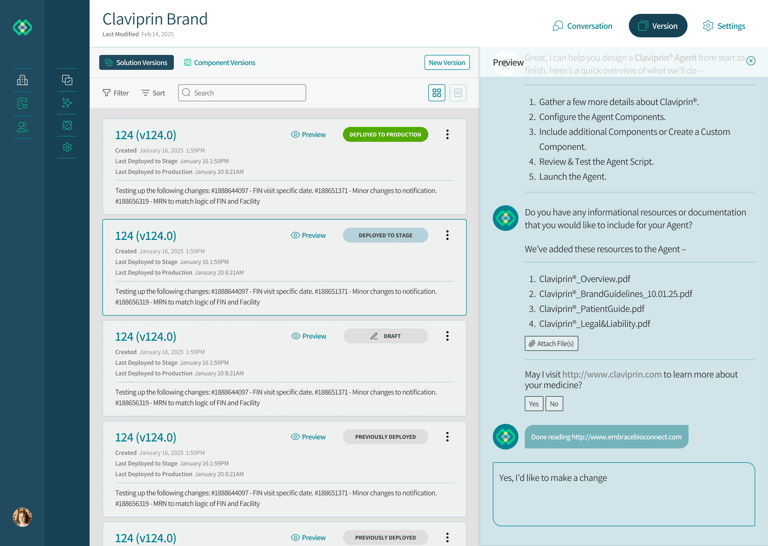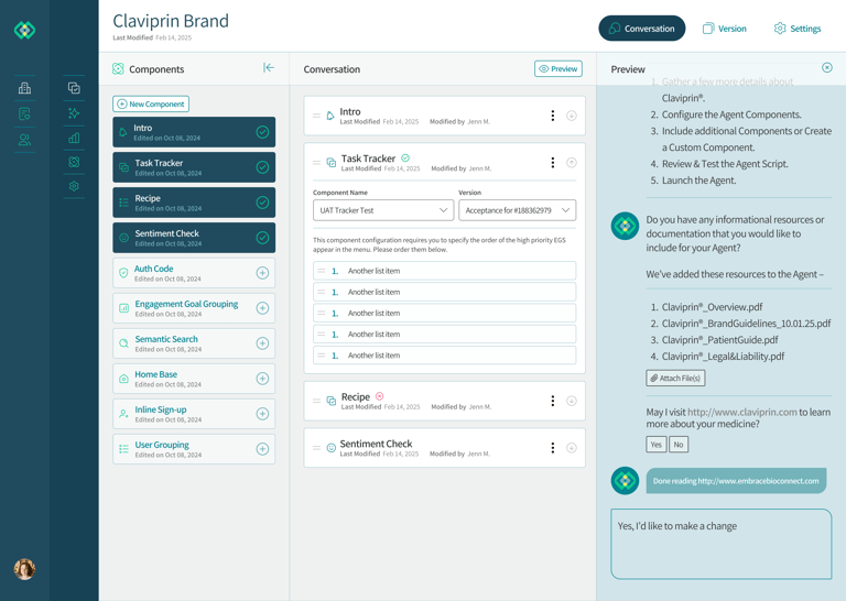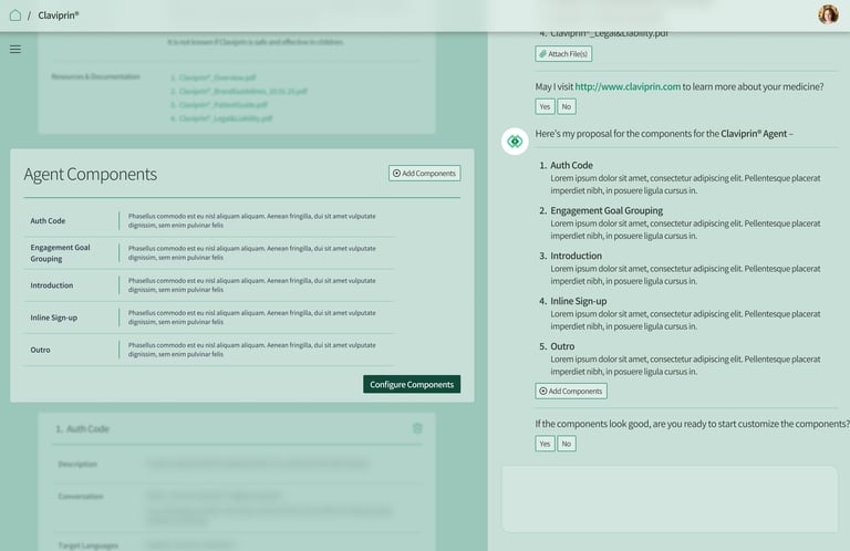 The Conversational Experience is an adaptive and modular assistant that allows users to customize the look and feel across their orgs' medicine portfolio.