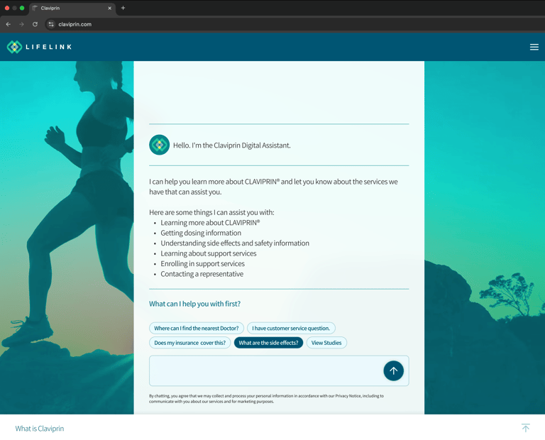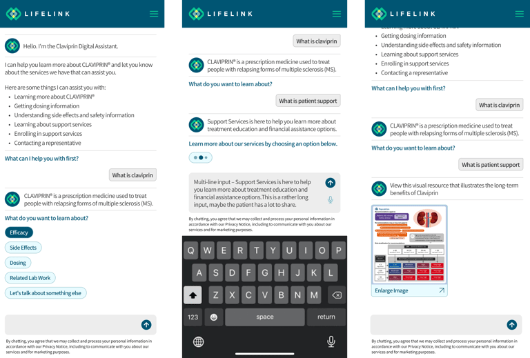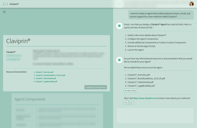 The LifeLink Agentic Product Experience helps medicine marketers with building component-based conversational assistants that help patients learn about a medicine, connect with doctors, and schedule appointments.
