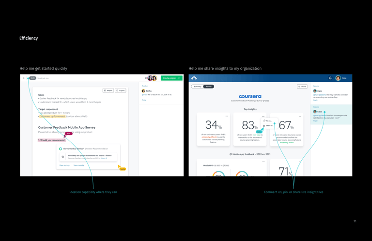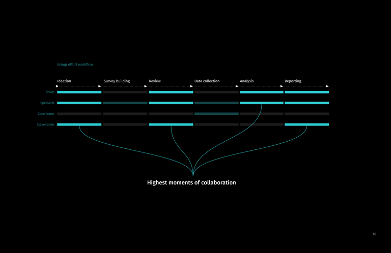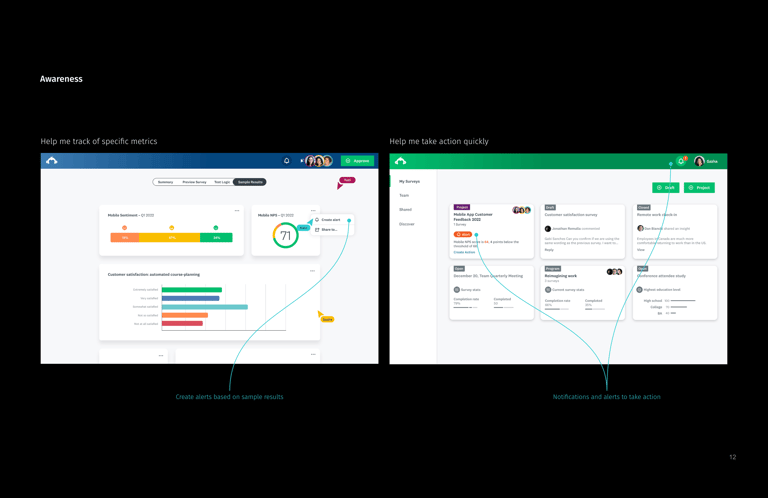 The primary differentiator between SurveyMonkey's Self-Serve & Enterprise products was collaboration. I reimagined an enterprise research experience that illustrates points of high-collaboration, and the surfaces and capabilities necessary to support these moments.