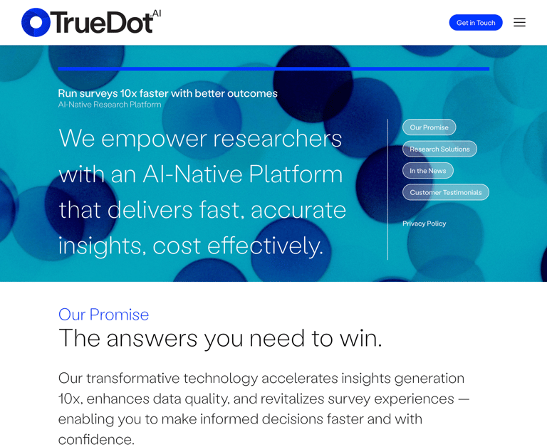 TrueDot.ai is an AI-native platform that provides faster, more accurate insights at a lower cost.